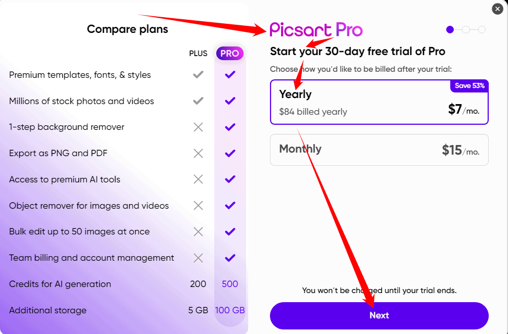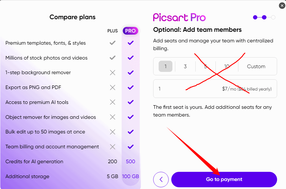 3. Tiến hành nhập thông tin thanh toán và kích hoạt Picsart Pro.